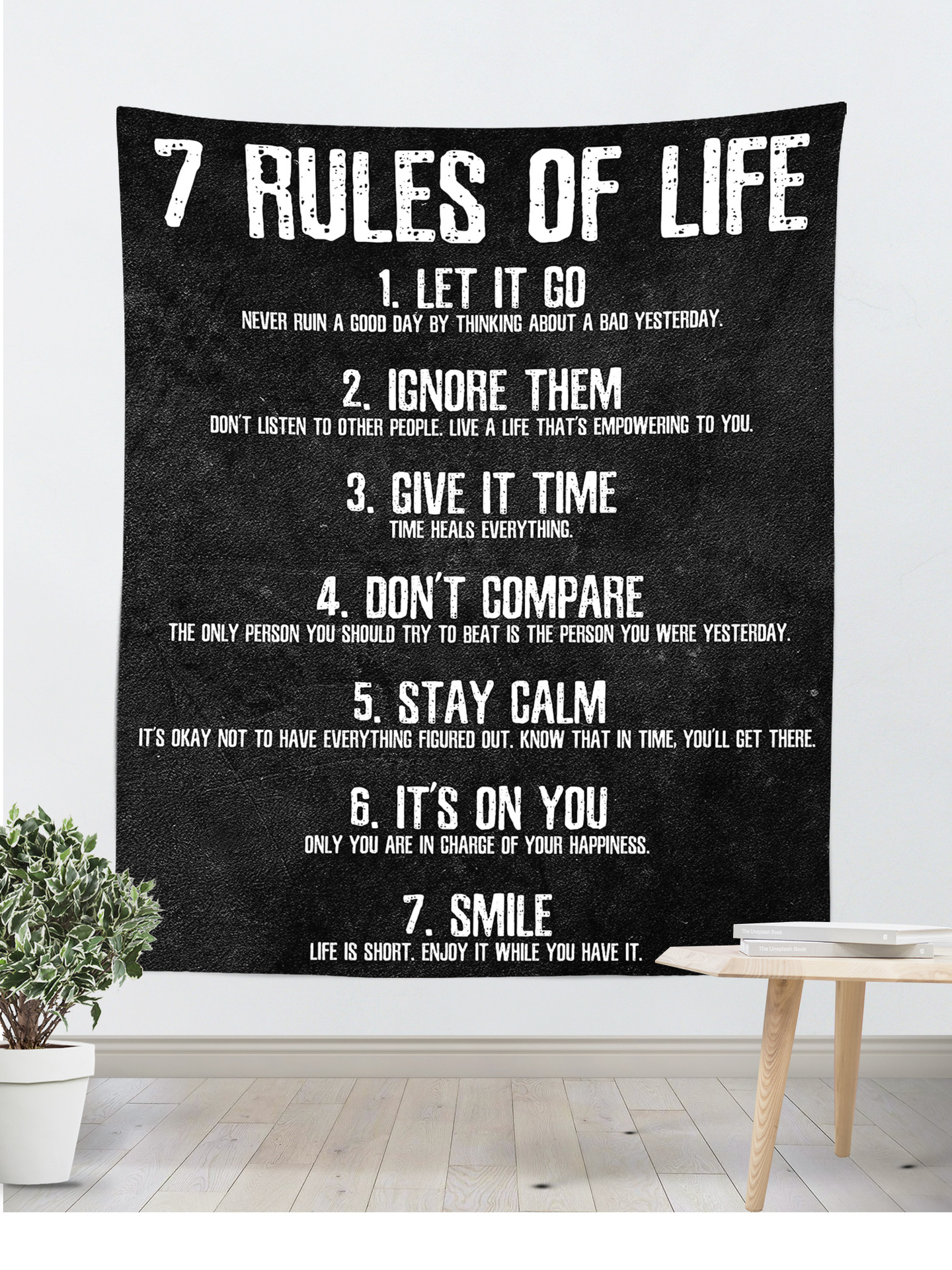 7 Rules of Life Tapestry, Inspirational Quote Print Wall Art Office Décor, Quote for Home Office Man Cave College Student Teacher Coach