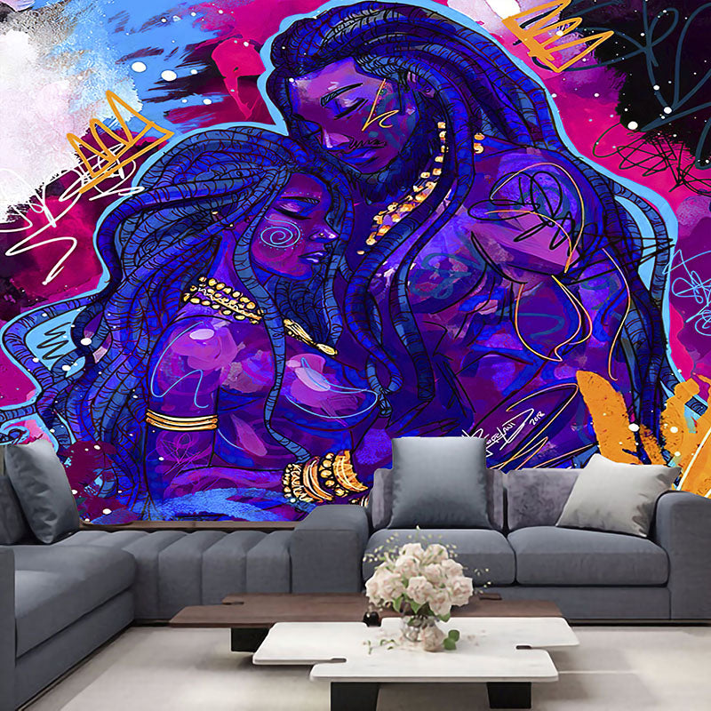 African American Sexy Women Tapestry, Wall Art Tapestries, Hippie , African Black Couple Lovers Wall Tapestry For Living Room College Dorm