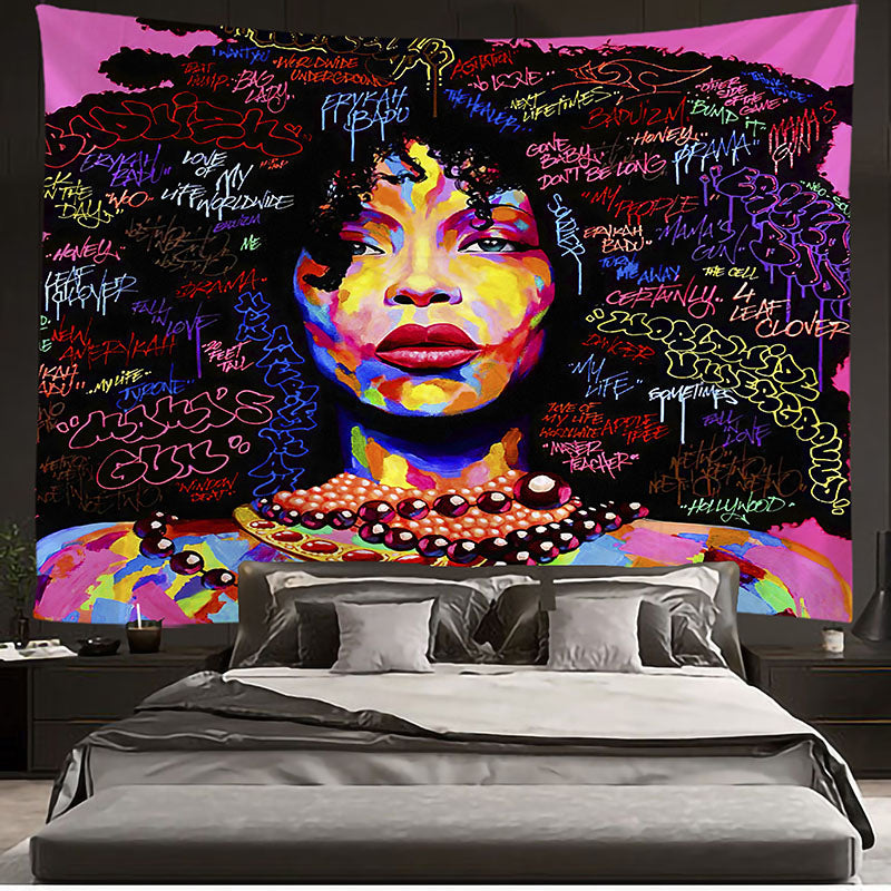 African American Women Tapestries Wall Art Black Afro Girl Tapestry Graffiti Hippie Bedroom Living Room Dorm Wall Hanging Throw Bedspread
