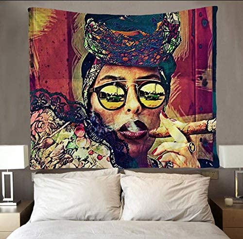 African Women Lady Tapestry African American Woman Smoking Tapestries Wall Art Rasta Bedroom Living Room Dorm Wall Hanging Throw Bedspread