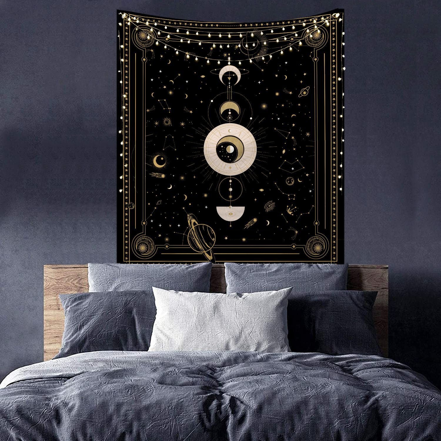 Black and White Tapestry, Astrology Moon Phase Tarot Tapestry Wall Hanging Witchcraft Bed Room Wall Decor Art Celestial Psychedelic
