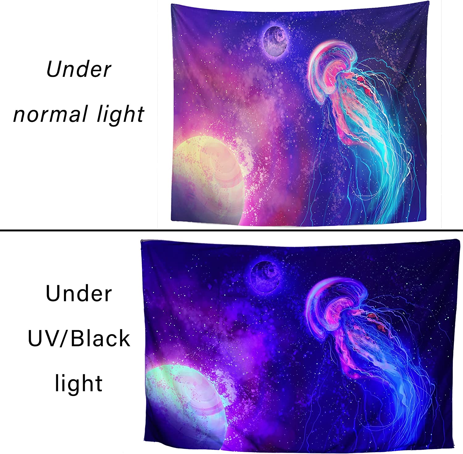Black Light Tapestry, Trippy Jellyfish , UV Ocean Reactive Poster, Universe Galaxy Planets Space Underwater World Wall Hanging for Bedroom