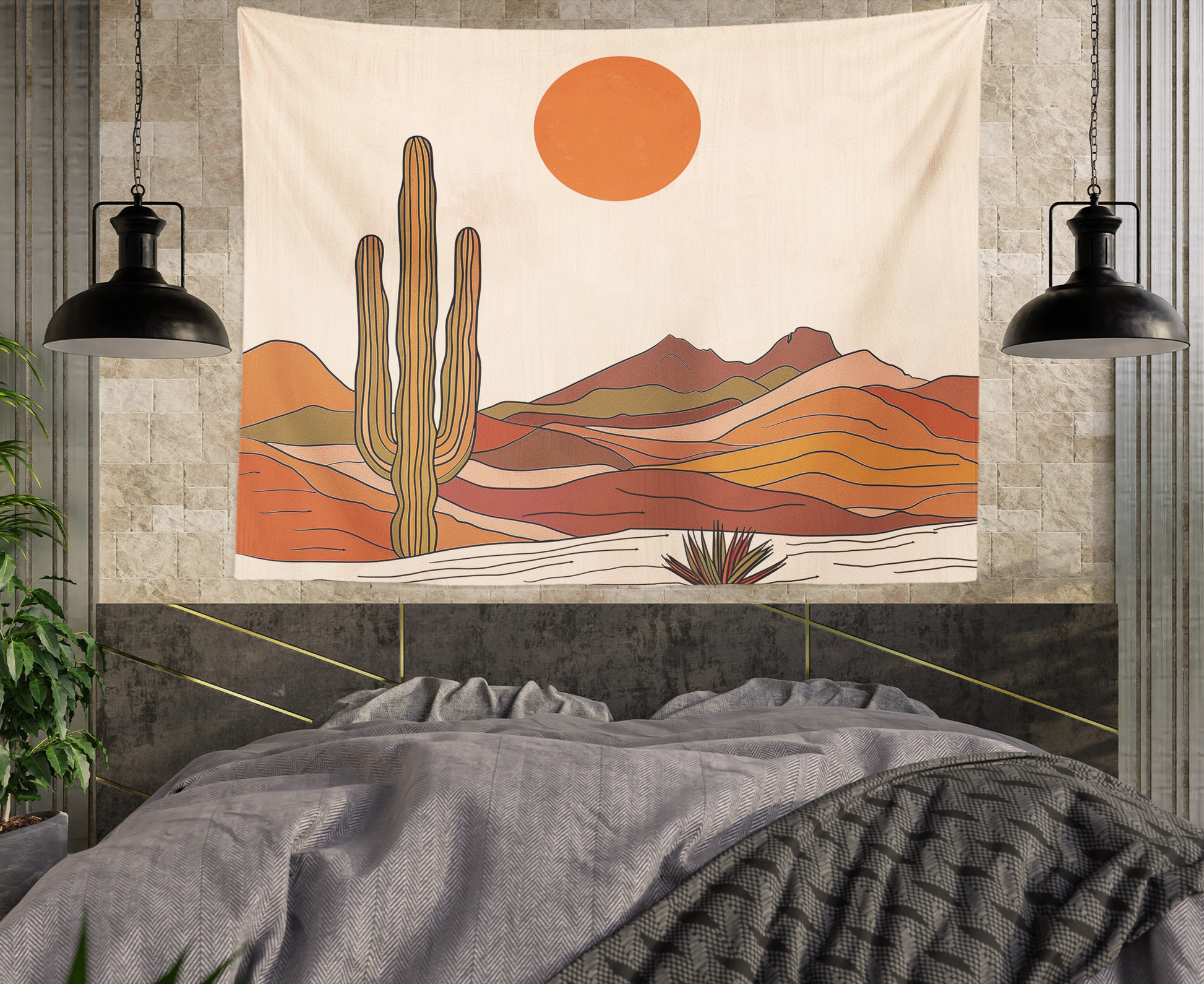 Boho Desert Landscape, Tapestry Wall Hanging, Desert Sun, Wall Art, Abstract Mandala Print Décor Living Room/Bedroom/College Dorm