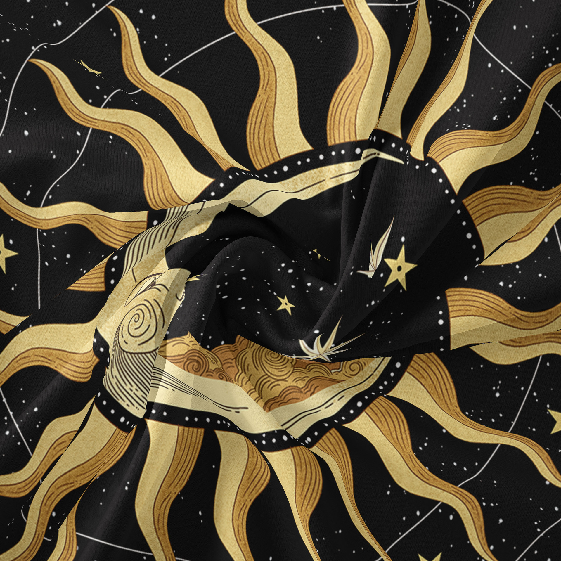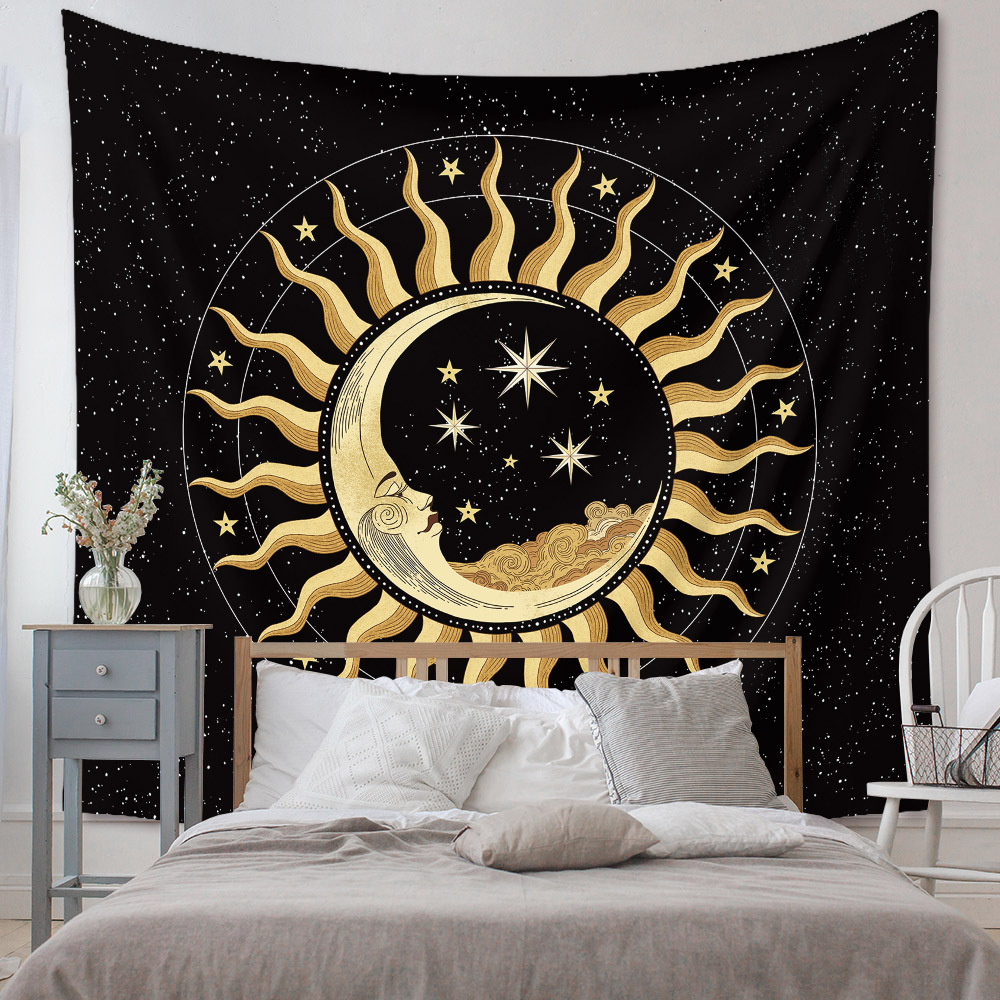 Moon and Sun Wall Hanging Mandala ,Tarot Cloth , Starry Night Wall Art Tapestry, Hippie Bohemian Boho Décor, Celestial ,Mystical for Room