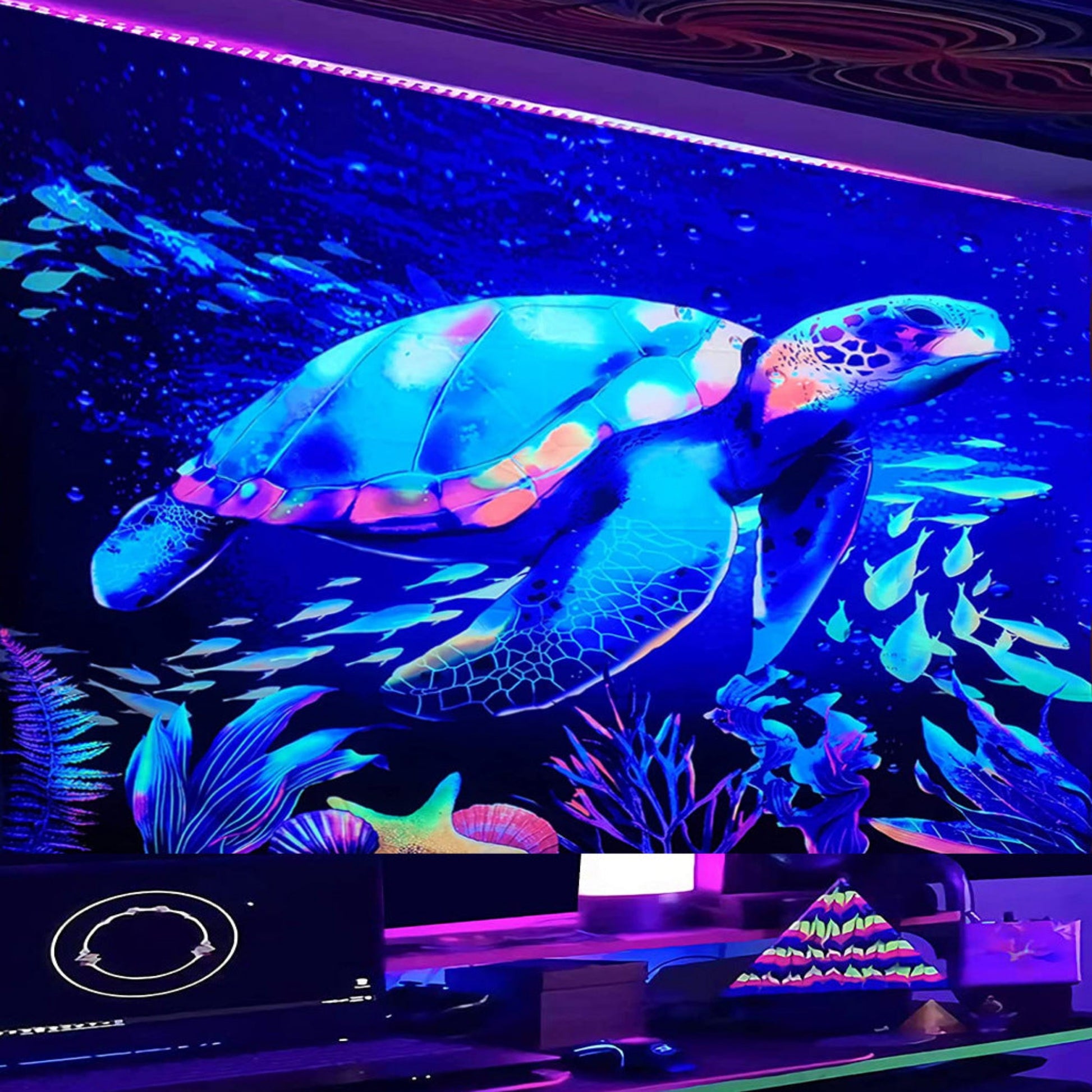 Sea Turtle Tapestry, Fluorescent Tapestry, Backlight Wall Hanging, UV Reactive Tapestries ,Ocean life Mandala, for Bedroom Dorm Party Décor