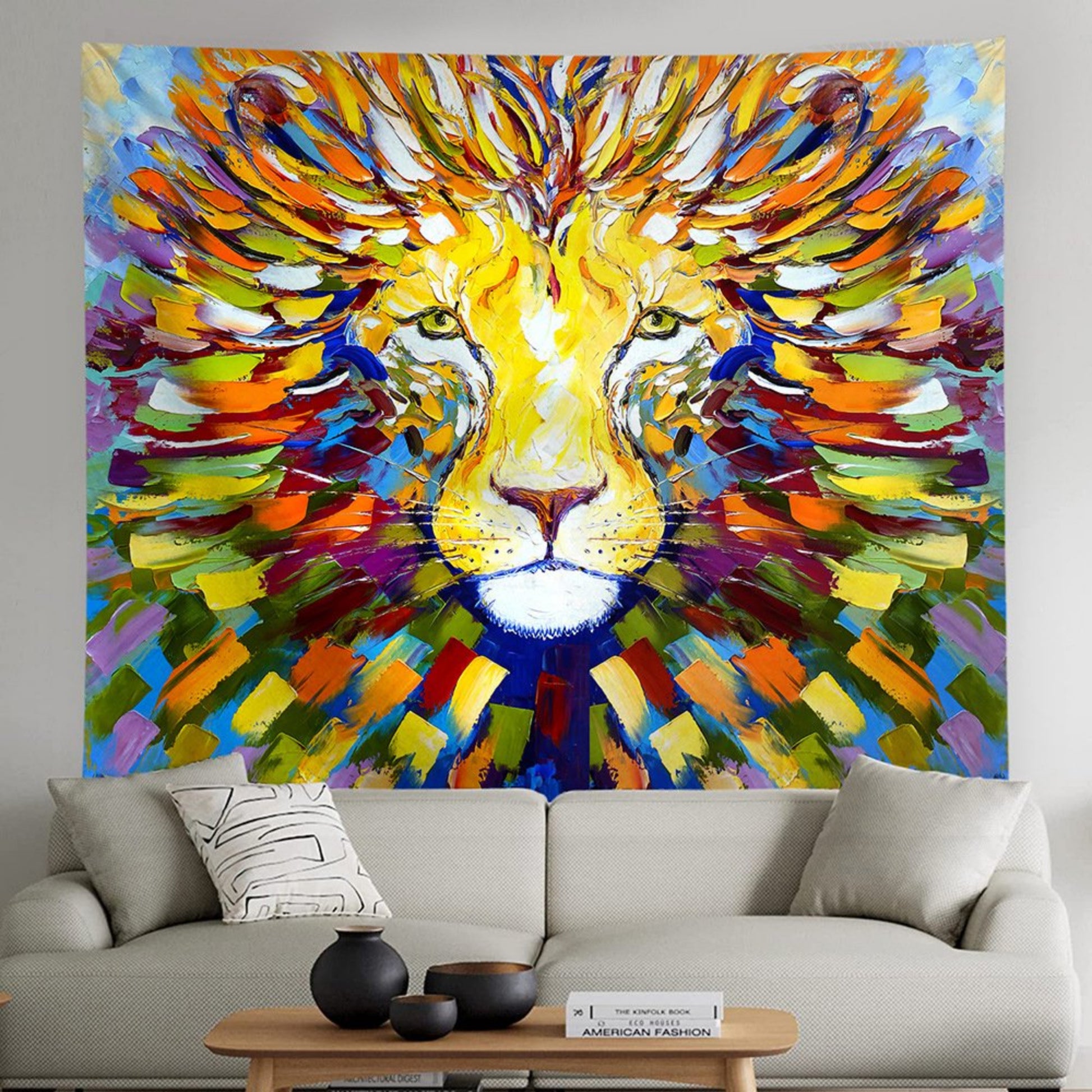 Lion UV Reactive Tapestry, Animal Tapestries , Fluorescent Black light Psychedelic Neon Trippy Wildlife King Wall Hanging For Backdrop Dorm