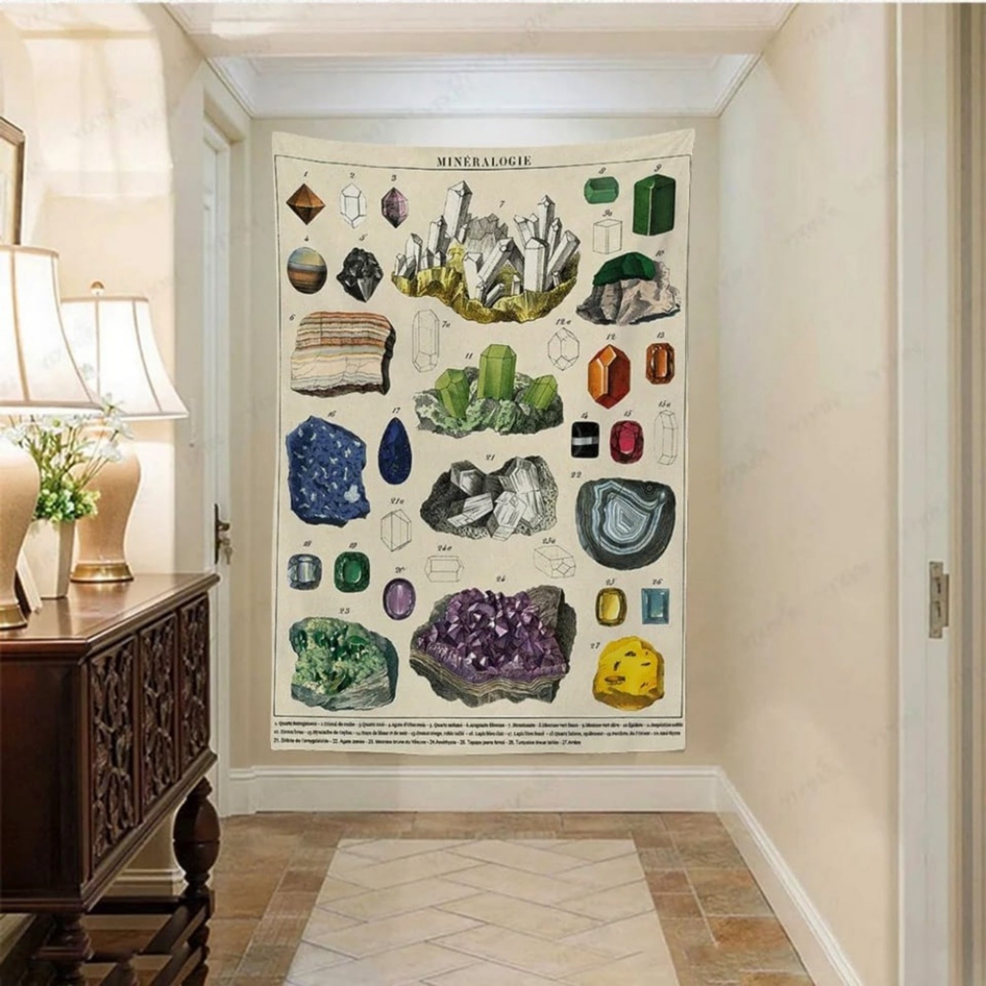 Our Mineralogy Tapestry stands out for its handcrafted quality and authenticity—an embodiment of the creativity and passion that Etsy is known for. Each tapestry is a labor of love, from the careful selection of each mineral depicted to the precision of the print. It's not just a wall hanging; it's a piece of art that tells a story, a focal point that sparks conversation and wonder. Let this tapestry be a window into the fascinating world of mineralogy, a tribute to the beauty beneath our feet, and a testament to the artistry of nature itself. Add this enchanting piece to your home collection today and let the wonders of the mineral kingdom enrich your space.