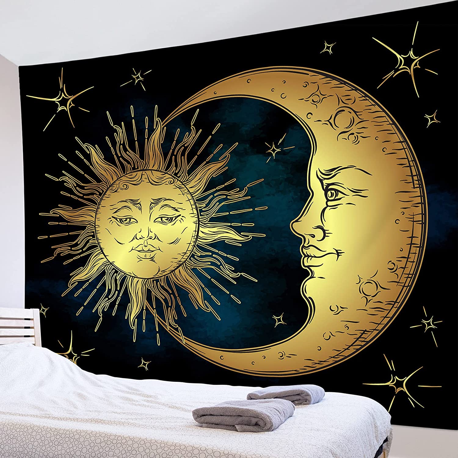 | Moon And Sun Tapestry, Psychedelic Wall Hanging, Myth Astrology Art Print, Tarot Cloth, Occult Tapestries For Bedroom Living Room Dorm |