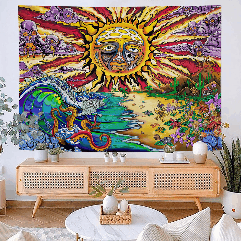 Trippy Sun Tapestry, Psychedelic Hippie Sublime Ocean Wave Sunset Sunrise Wall Hanging, Colorful Monster Wall Tapestry, Aesthetic Decor