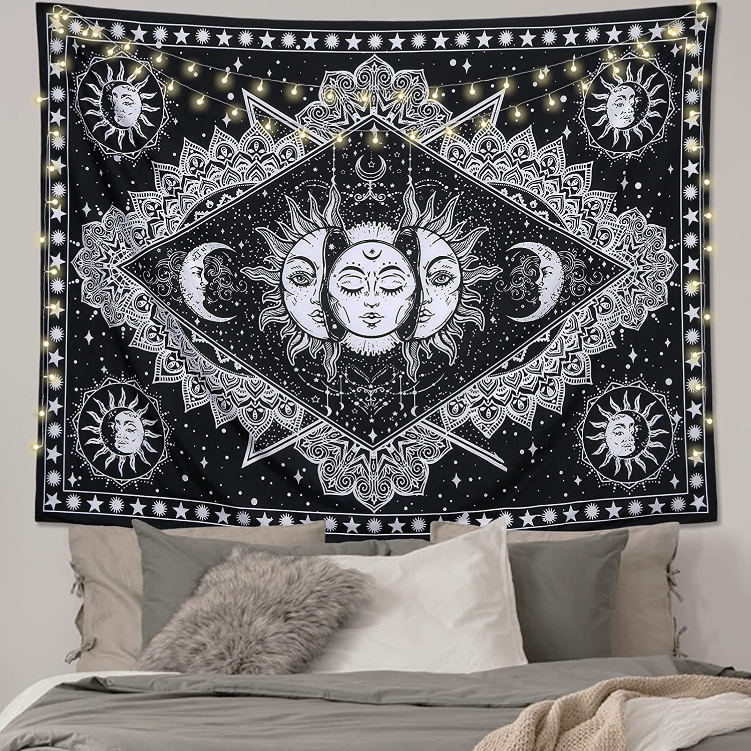 | Sun and Moon Wall Hanging, Black and White Tapestry, Tarot Design, Chakra Mystic Mandala, Aesthetics Wall Art for Living Room and Bedroom |