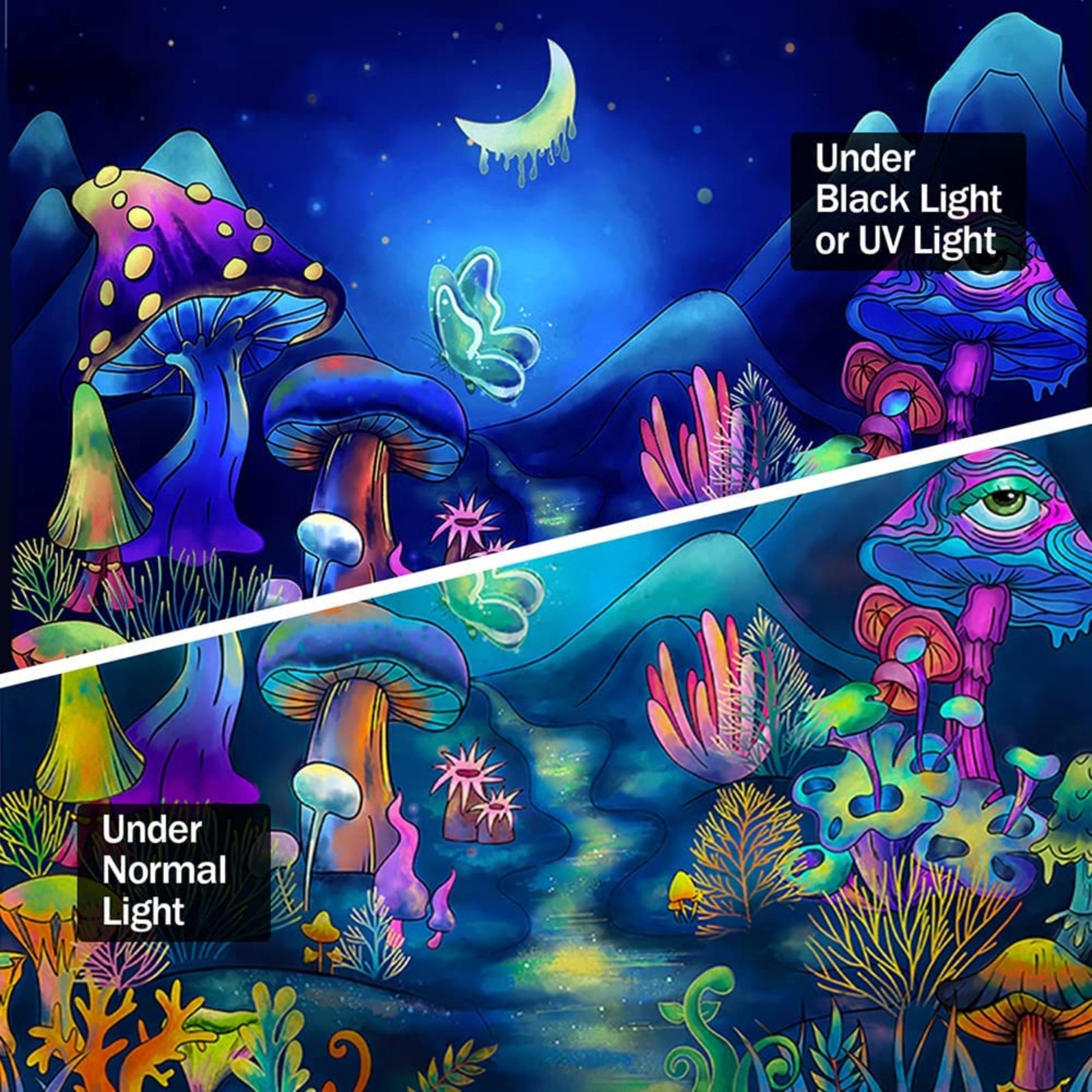 Trippy Mushroom Tapestry, Floral Tapestries, Blacklight Wall Hangings, UV Reactive Tapestry, Glow in the Dark Backdrop Bedroom Living Room