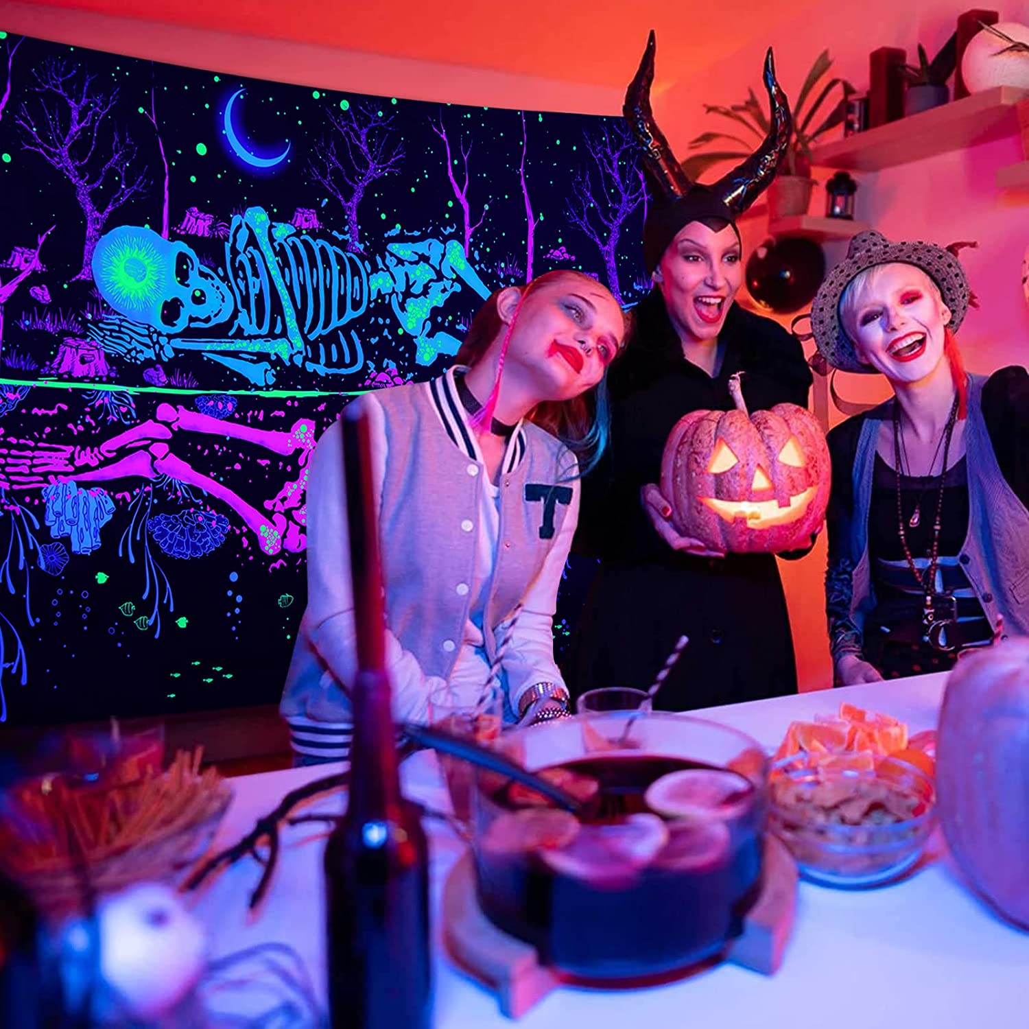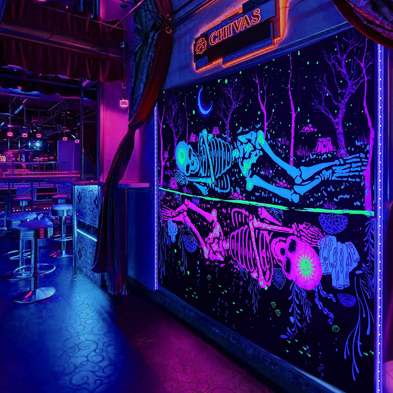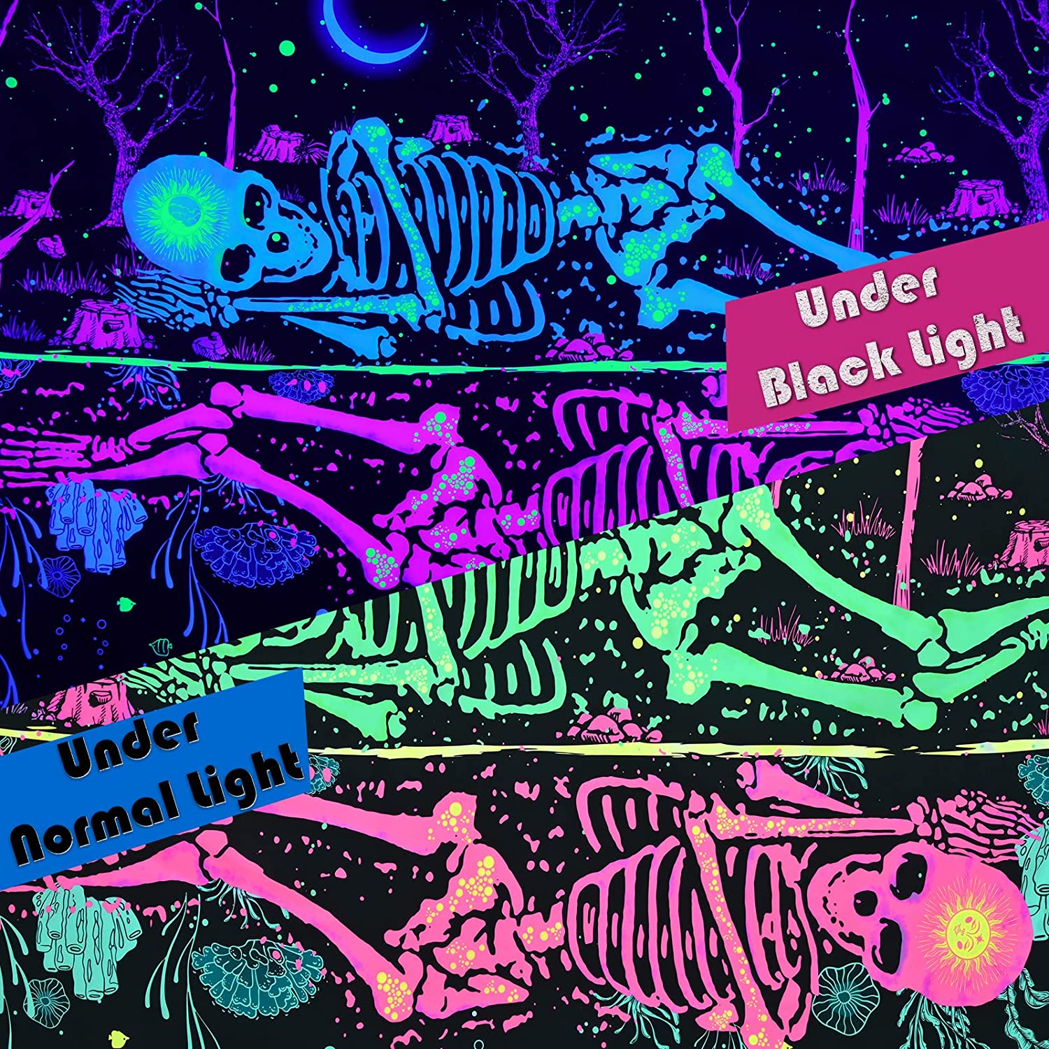 UV Reactive Black Light Fluorescent Wall Hanging, Skeleton Lover Tapestry, Trippy Tapestry, Psychedelic Dark Galaxy Moon Mandala Party Décor